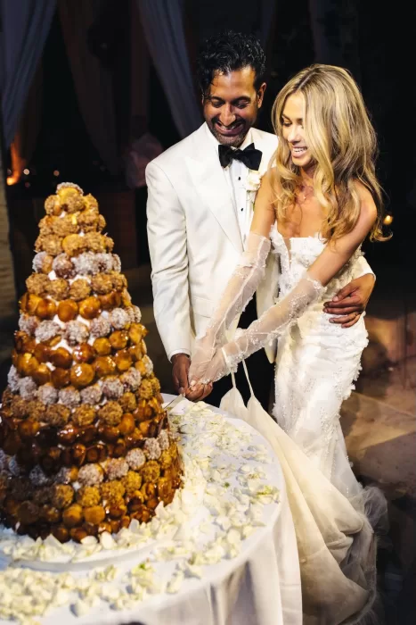 Moments of joy and intimacy carried through the entire evening. The couple’s cake—a towering croquembouche—was cut with laughter, while the first dance unfolded beneath a canopy of light, surrounded by friends and family. Marrakech itself lent a richness to the atmosphere; the ochre walls, textured courtyards, and surrounding gardens all adding layers of character. For couples considering a wedding abroad, Marrakech continues to stand out as one of the most inspiring destinations in the world.