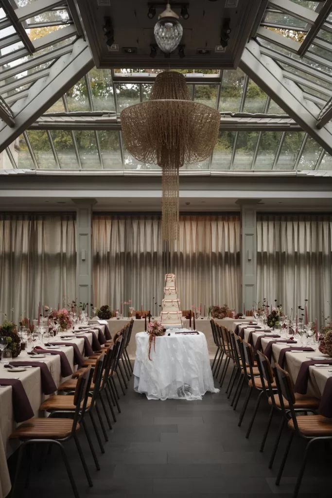 For couples planning autumn weddings in England, this shoot offers inspiration on how to embrace the season and create something warm, modern, and artistic. Hampton Manor proves that even when the skies are overcast, light and romance can flourish indoors.
