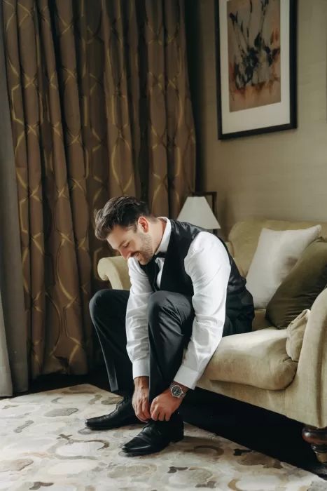 Dinner and dancing returned to the cosy elegance of the hotel’s interior, where golden lighting, modern art, and rich wood tones created a stylish, celebratory contrast to the outdoor drama. Their first dance felt intimate, unhurried—just two people wrapped up in the moment, as if no one else existed.