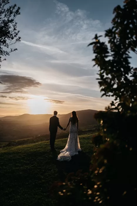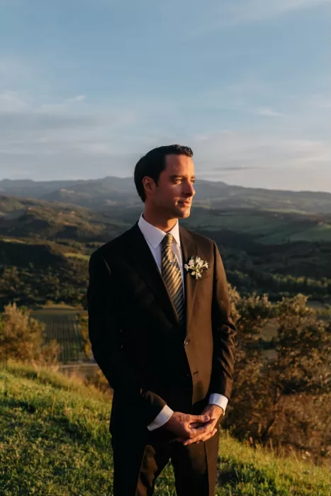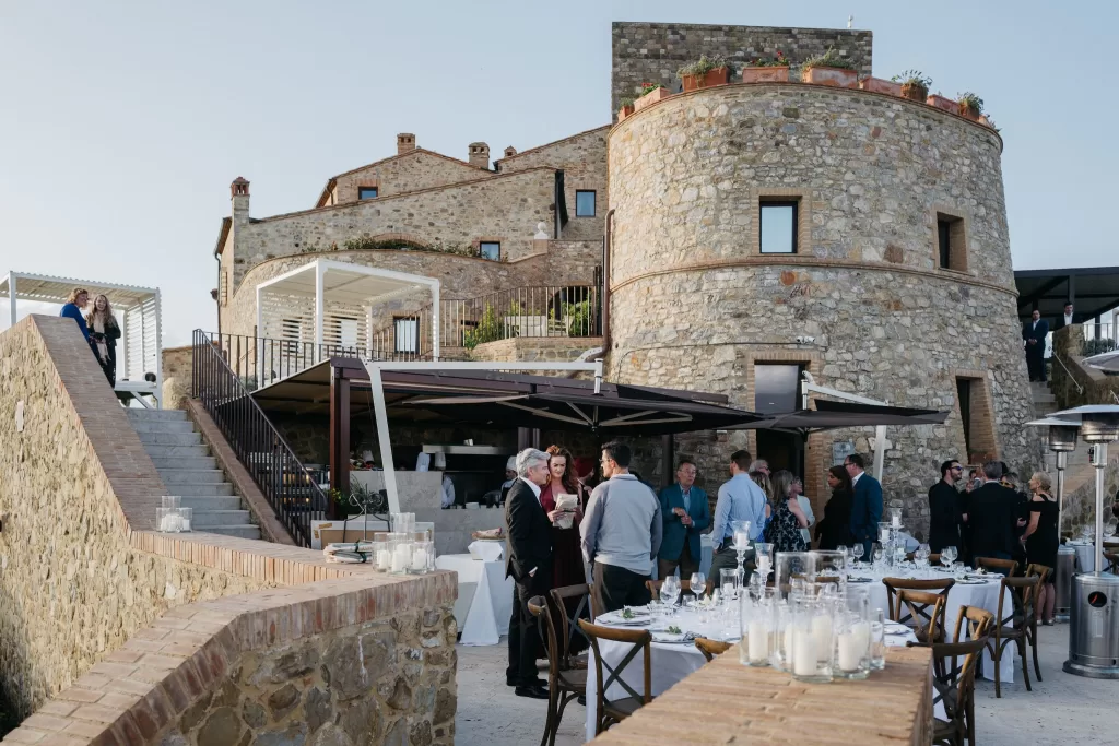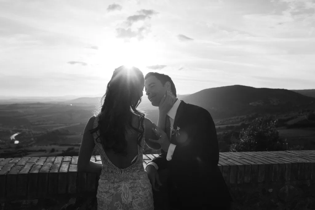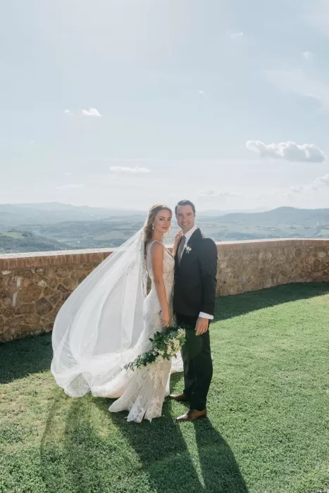 Perched high in the Val d’Orcia, Castello di Velona set the stage for a wedding that felt both intimate and cinematic. With stone walls weathered by centuries and sweeping views across the Tuscan countryside, it’s the kind of destination that immediately transports you into another rhythm of life. For couples seeking a wedding in Italy, this castle offers not just a venue, but an atmosphere—romantic, historic, and impossibly serene.