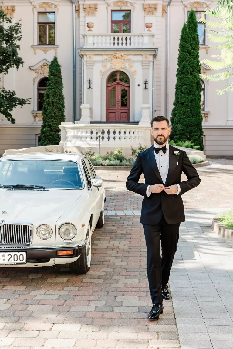 Erika, a self-described perfectionist with a deeply romantic soul, had one clear vision: to capture not only beauty, but feeling. “The bouquet, the decor, the mood, the love, and the closeness,” the photographer, Jurgita Lukos, recalled. Her words say it all. The ceremony took place in a peaceful linden alleyway, with soft summer light filtering through the canopy above. Officiated by Priest Saulius Juozaitis of Kaunas Evangelical Lutheran Church, it was as thoughtful and grounded as the couple themselves.