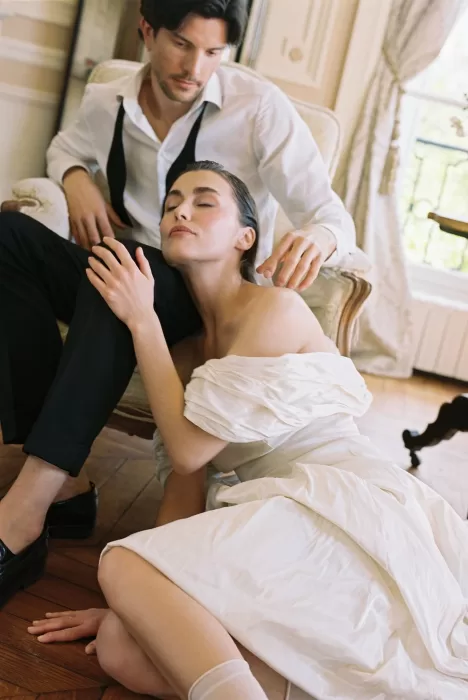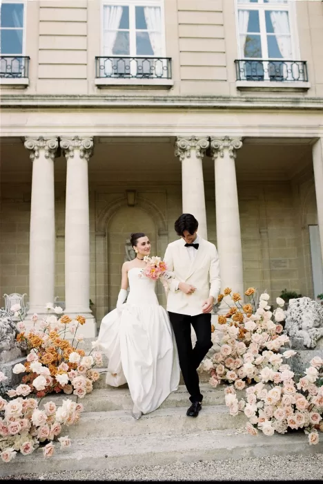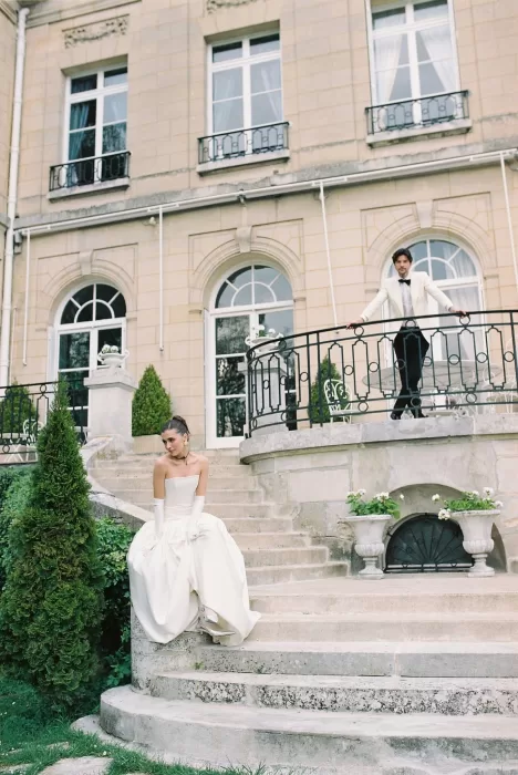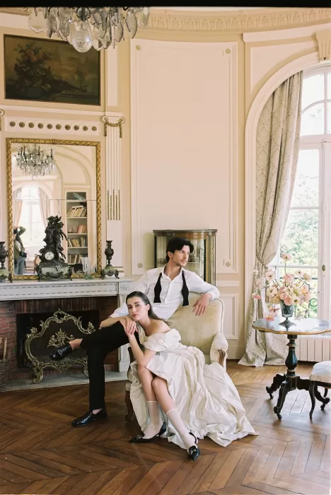 An elopement at Château du Prieuré d’Evecquemont carries an unmistakable cinematic pull — the quiet confidence of a story unfolding without an audience. Photographer Irena Balashko described it as “a timeless love story… the kind you only see in old, nostalgic French films,” and the photographs reflect exactly that mood. From the moment the couple stepped into the soft, neutral interiors of the château, the day moved with a quiet rhythm that suited an intimate celebration just outside Paris. With its historic architecture and sunlit rooms, it’s the kind of setting that instantly shows why couples look to France for weddings that feel both understated and visually rich.