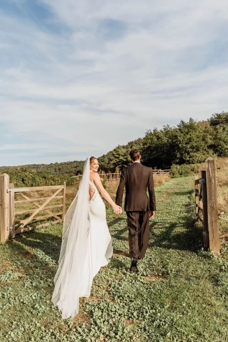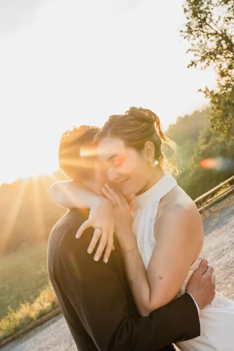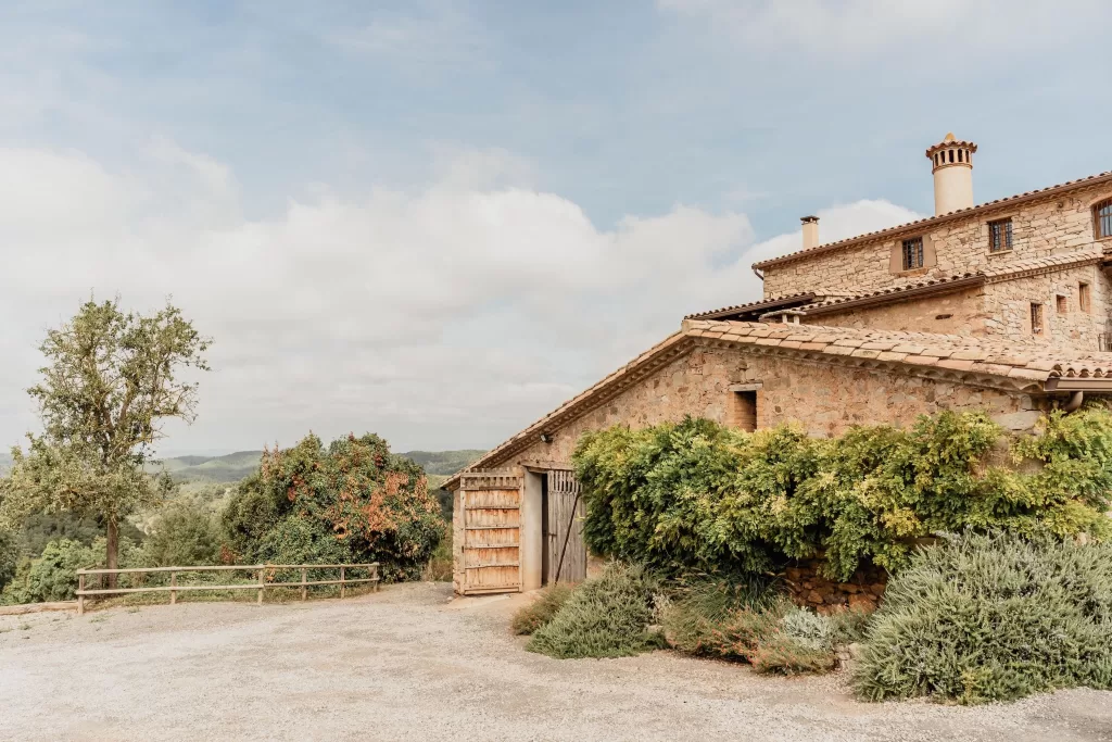 As the day shifted into evening, the celebration continued outdoors with a long, terracotta-hued dinner table set against rolling views of Moià’s countryside — a perfect scene for destination wedding inspiration in Spain. The couple’s choice of This Must Be The Place reflects the growing appeal of relaxed, design-led venues in Europe, where guests can gather, dine, and dance under the open sky.