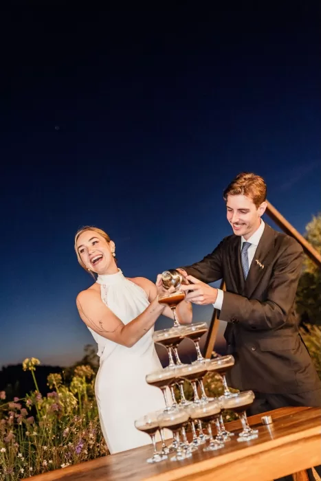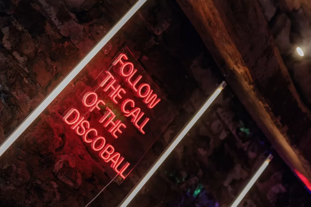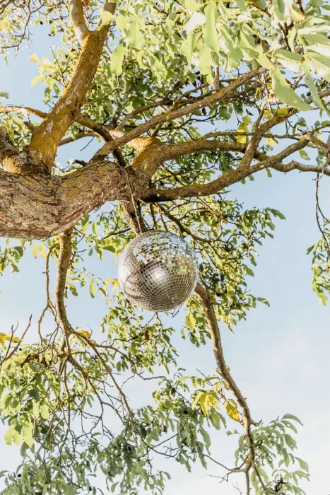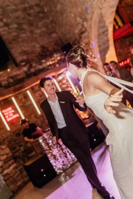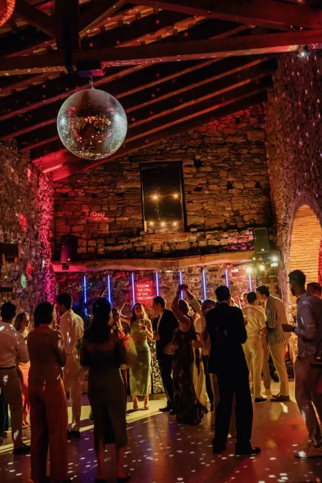 When night fell, the atmosphere transformed into a lively disco with a glowing neon sign reading “Follow the Call of the Discoball.” The couple’s first dance marked the start of a night that embodied everything the day had promised — fun, freedom, and pure joy. As Anna says, “They chose a stunning venue and wonderful vendor team who made the day just perfect — a flow of events, fun and effortless from the morning until the ‘disco’ disco!”