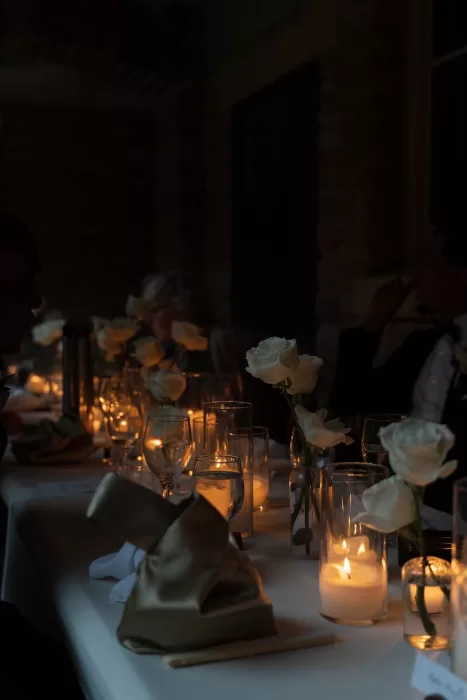 Guided by their shared Christian faith, the couple’s day unfolded with calm sincerity. Every detail reflected their wish for intimacy — a small gathering, a dinner lit by candles and surrounded by roses, moments that felt genuine rather than grand. The photographs capture quiet pauses between laughter and prayer, revealing a day anchored in love and purpose.