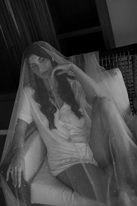 Captured by Luxart Wedding Studio, the day unfolded beneath swaying palms and ocean breezes. The couple exchanged vows on the villa’s grand stone staircase framed by a dramatic floral arch of white blooms and tropical greenery—a scene that could easily belong in the pages of a modern wedding editorial.