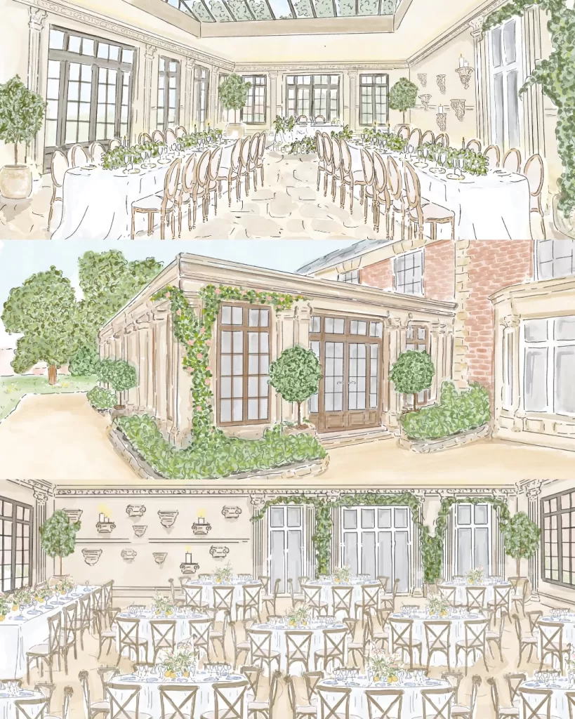 Looking ahead, Garthmyl Hall is preparing to unveil a permanent Georgian Orangery, replacing the current marquee. Designed with a large glass ceiling lantern, whitewashed walls, underfloor heating, sound insulation and creative lighting, the Orangery will seat up to 170 guests and blend French château influences with Georgian architecture. This addition will further elevate the flow of indoor-outdoor celebrations from May 2027 onwards.
