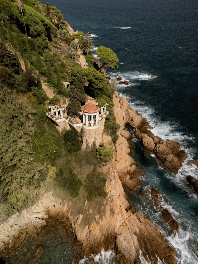 Marimurtra Botanical Garden feels defined by its setting before anything else — a wedding venue on the Costa Brava where cypress-lined paths, clipped terraces, and dense Mediterranean planting lead directly towards the sea. In Blanes, its atmosphere is shaped by that tension between structure and coastline, with the garden laid out in deliberate lines against rocky cliffs and open water.
