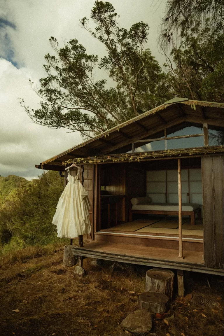 Ossipoff’s Cabin feels radically removed from the usual idea of a wedding venue in Hawaii. High in the Waiʻanae mountains on Oʻahu, its atmosphere is shaped by cedar, glass, sliding panels, and a design language that sits lightly against the ridge rather than competing with it. The setting feels quiet, exposed, and almost monastic, with sky, mist, and forest doing as much as the architecture itself.