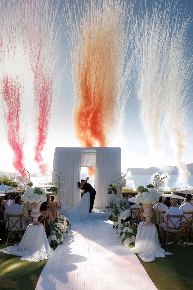 Ceremonies are often timed for late afternoon, when the light softens and the coastline takes on a quieter tone, naturally leading into the evening’s celebrations.